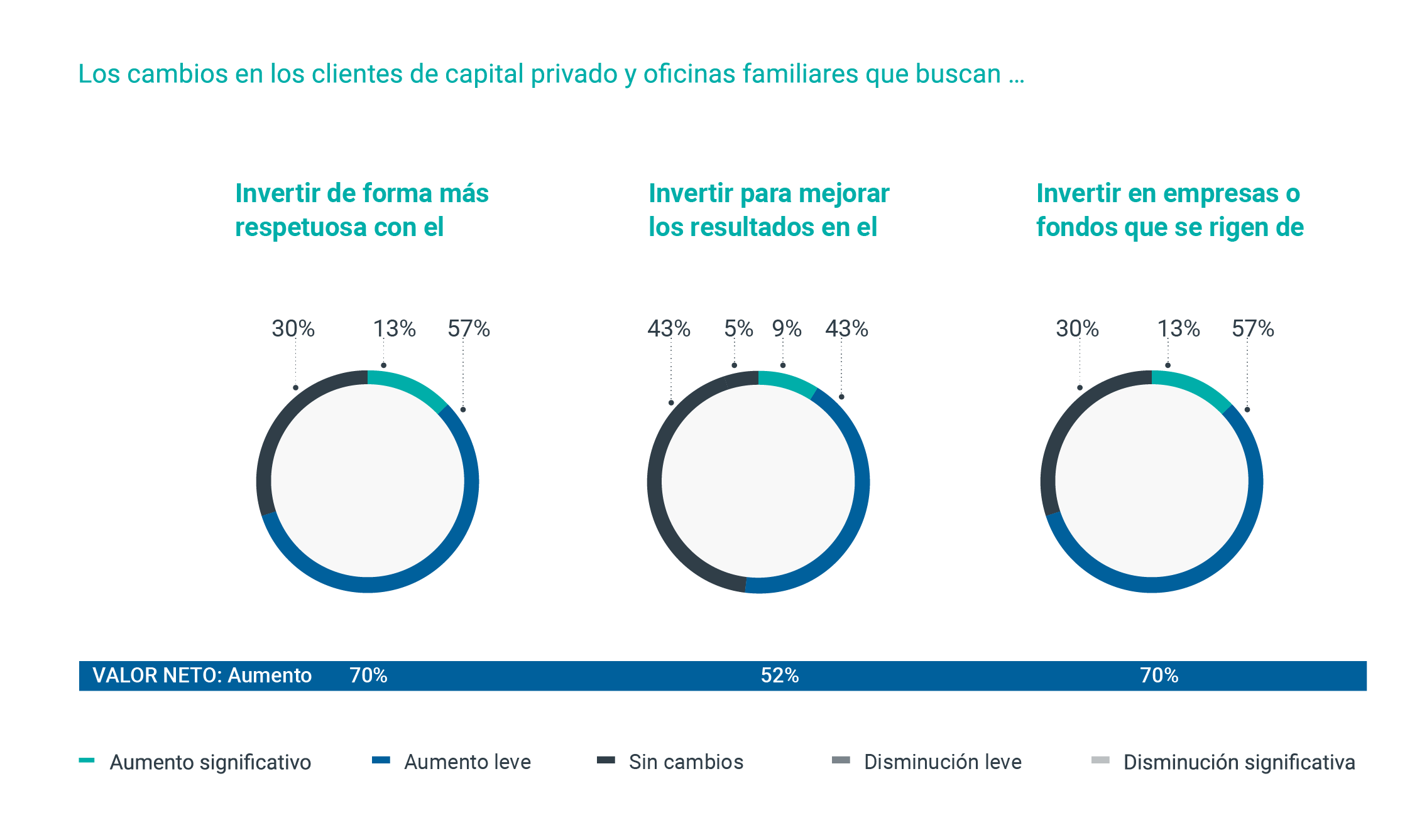 Los servicios de capital privado (private wealth) y gestión de oficinas familiares (family office) tienen cada vez más en cuenta las prácticas medioambientales. Los clientes han invertido cada vez más en prácticas respetuosas con el medio ambiente durante el último año en el 70 % de las jurisdicciones.