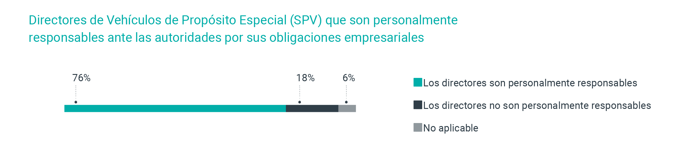 Tres cuartas partes de las jurisdicciones (76 %) informan de que los directores de los vehículos de propósito especial (SPV) pueden ser considerados personalmente responsables de las obligaciones empresariales, lo que se relaciona con un enfoque en la transparencia y el cumplimiento de las leyes y la legislación locales.