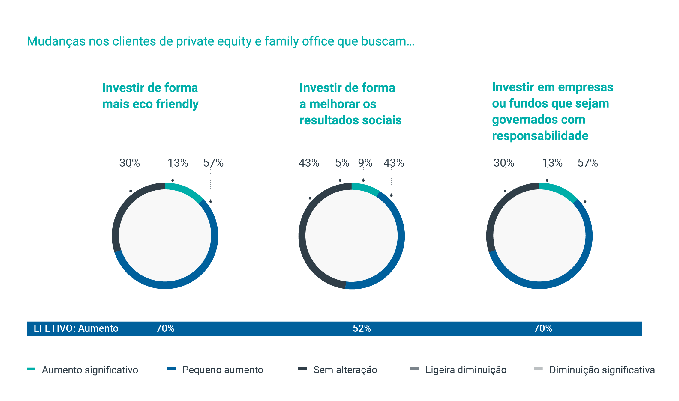 Os serviços de private equity e family office estão cada vez mais levando em consideração as práticas ambientais. Ao longo do ano passado, em 70% das jurisdições os clientes têm investido cada vez mais em práticas ecologicamente corretas.