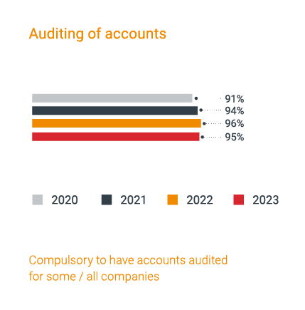 It is also now more common that jurisdictions mandate the need to obtain a business licence prior to becoming operational, and the need for tax audits. In 2023, businesses will need to be audited in 95% of jurisdictions worldwide, demonstrating that in the vast majority of markets, adhering to accounting and tax standards is unavoidable.