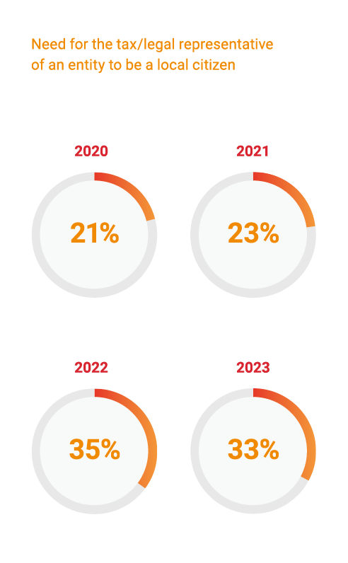 Since 2020, more jurisdictions mandate that the tax or legal representative of an entity needs to be a local citizen. This may leave organisations with an unexpected requirement to appoint an additional staff member with the requisite knowledge or qualifications in these jurisdictions, or consider the relocation of senior staff which typically incurs cost.