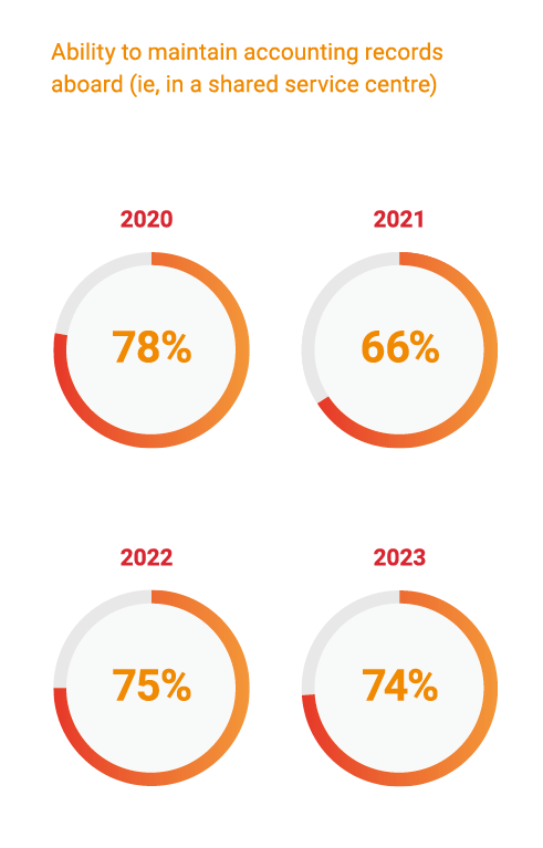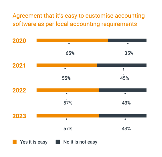 On the other hand, digitalisation can also bring its own complexity. For instance, it’s becoming more difficult to customise accounting software for local requirements, with our experts in 43% of jurisdictions indicating that it’s not easy, versus 35% in 2020. This demonstrates that as digitalisation becomes more embedded globally, organisations can face challenges aligning their accounting and tax software locally.