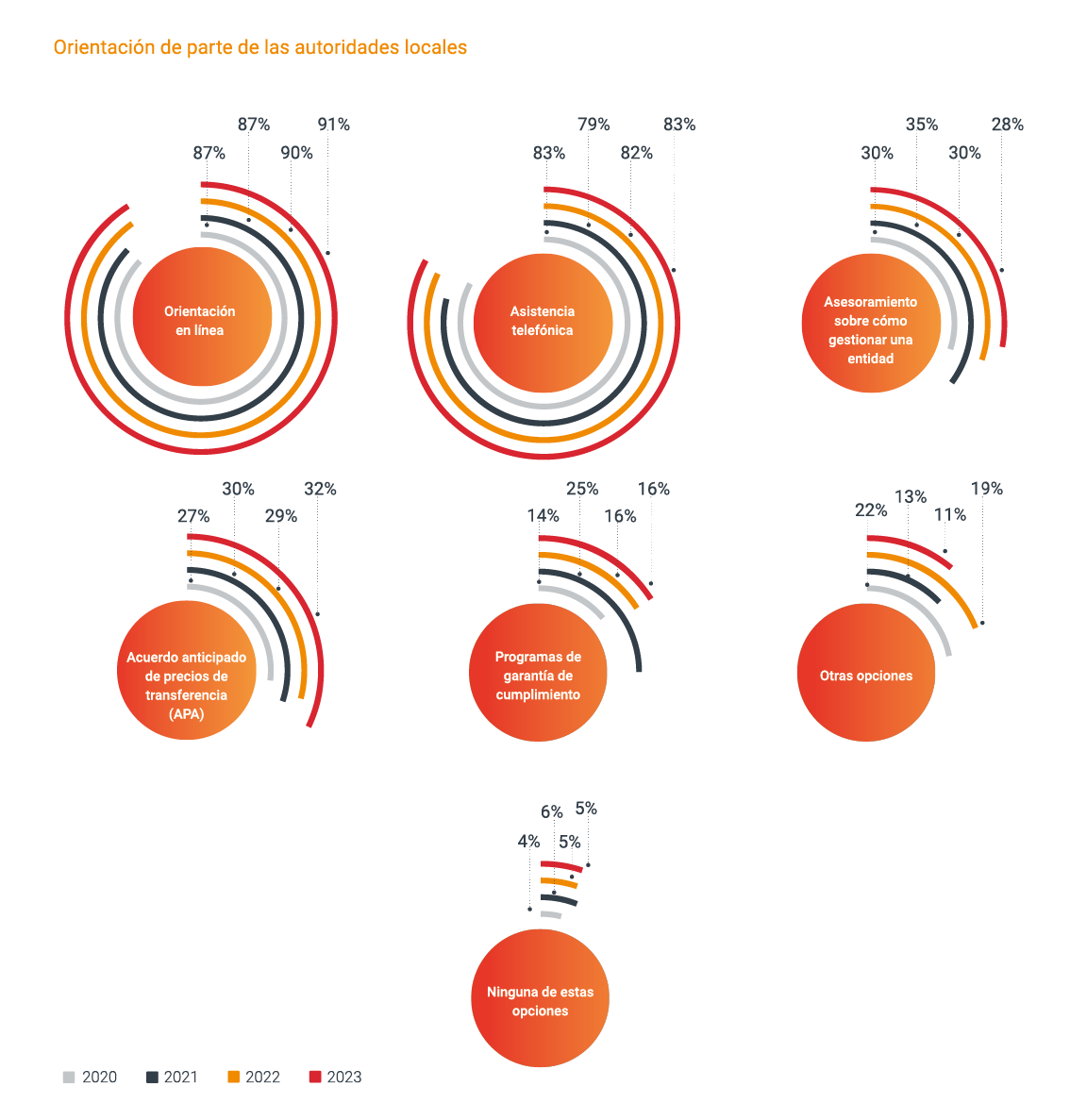En 2023, solo el 5 % de las jurisdicciones de todo el mundo no ofrecen orientación a las empresas para que sigan cumpliendo la normativa. Por ejemplo, Grecia, una de las jurisdicciones más complejas en materia de contabilidad e impuestos en 2023, no ofrece este tipo de ayuda. Las autoridades pueden tardar meses en responder a las consultas, lo que dificulta el cumplimiento a las empresas.