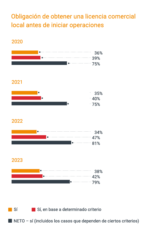 También es cada vez más común que las jurisdicciones impongan la necesidad de obtener una licencia comercial antes de empezar a operar, así como la necesidad de realizar auditorías fiscales. En 2023, las empresas tendrán que ser auditadas en el 95 % de las jurisdicciones de todo el mundo, lo que demuestra que, en la gran mayoría de los mercados, es inevitable cumplir las normas contables y fiscales.