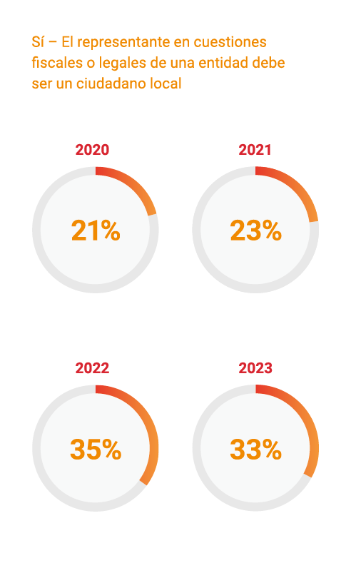 Desde 2020, más jurisdicciones exigen que el representante fiscal o legal de una entidad sea un ciudadano local. Esto puede dejar a las organizaciones con la necesidad inesperada de nombrar a un miembro adicional del personal con los conocimientos o calificaciones requeridas en estas jurisdicciones, o considerar la reubicación del personal directivo, que normalmente incurre en costos.