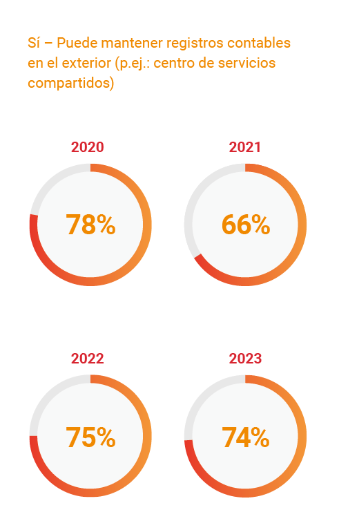 También es menos común en 2023 que las jurisdicciones permitan el mantenimiento de registros contables en el extranjero, como en un centro de servicios compartidos. Esto puede aumentar la complejidad para las empresas internacionales, ya que no pueden almacenar registros contables para múltiples jurisdicciones en la misma ubicación central. Por ejemplo, en Bolivia, la contabilidad debe llevarse en el país, de acuerdo con las normas contables bolivianas y en moneda local. Los contadores deben ser designados según las recomendaciones del Servicio de Impuestos Nacionales. Por tanto, no es sencillo adaptar y reproducir procesos contables o fiscales utilizados en otros lugares. La complejidad localizada puede crear peculiaridades que pueden resultar complicadas para las empresas internacionales.
